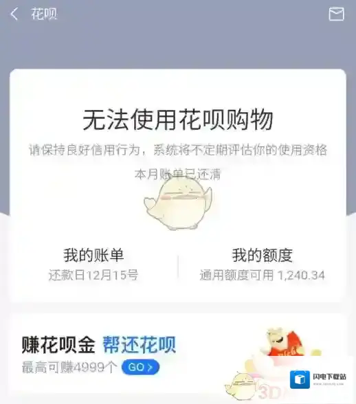 出现这种情况,通常用户在进行还款以后,结清花呗的账单,等待一周到一个月的时间,花呗就可以恢复使用了。