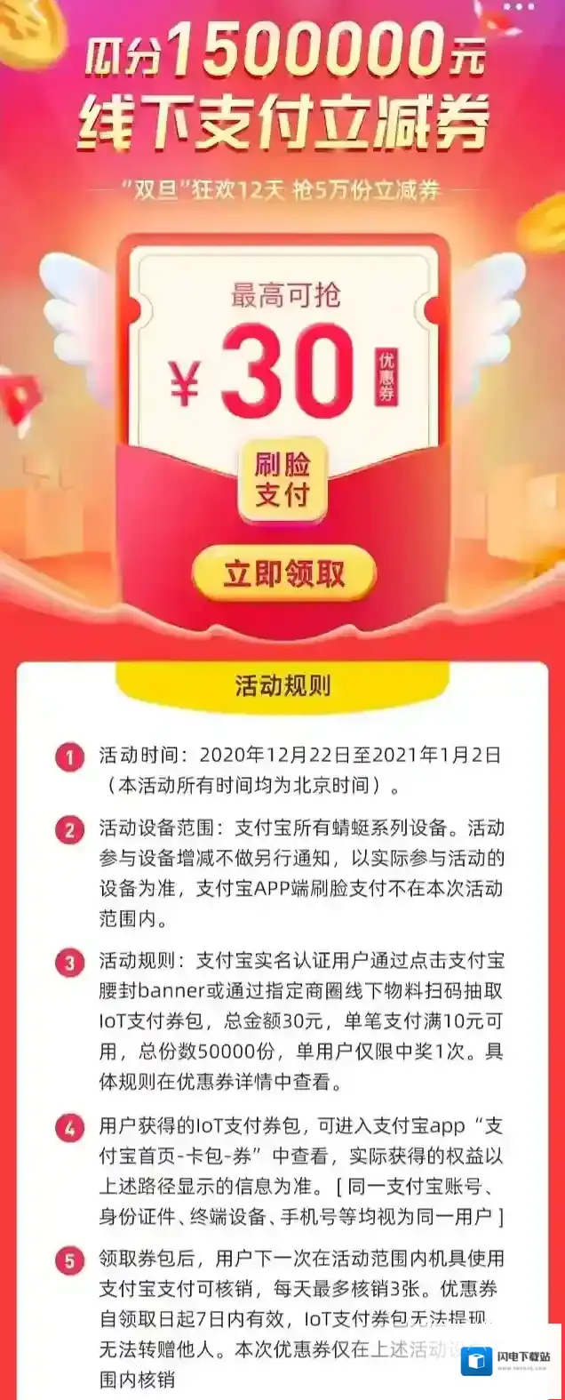 《支付宝》微笑赏金行动30元刷脸券使用规则