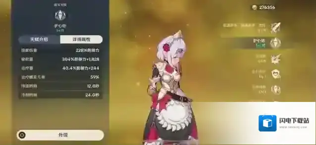 而诺艾尔就是另外一个岩盾,她的盾量是根据防御来决定的。在六命之前辅助效果都很强大,特别是防御拉满的情况下盾量直逼钟离。只是这个盾没有减抗和抗打断能力,不过也是全元素伤害都能吸收的。而且诺艾尔的盾有一个优点就是可以给队友回血,只要开盾之后用诺艾尔打出重击伤害就行。作为前期就会赠送的四星盾辅,在前面没有钟离的时候可以说是最好用的。