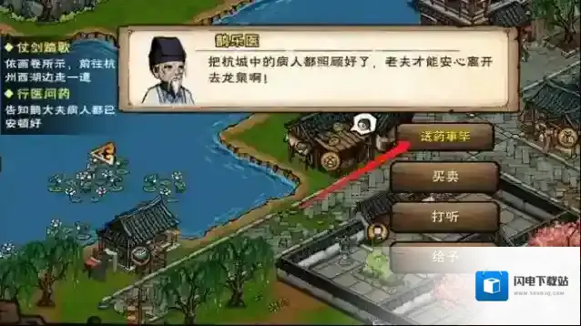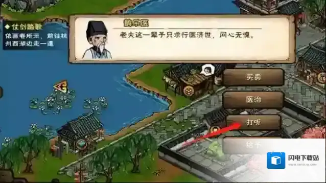 1、玩家在龙泉镇的民居中(6,14)与疯老汉和老妇人对话,然后去杭州宝安药堂(24,17)找鹊乐医向他打听疯老汉,鹊乐医请求帮忙是选择应下此事。