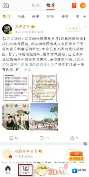 1、打开微博app,点击底部的“视频号”;