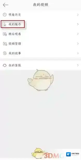 3、进入我的视频界面,点击“我的缓存”;
