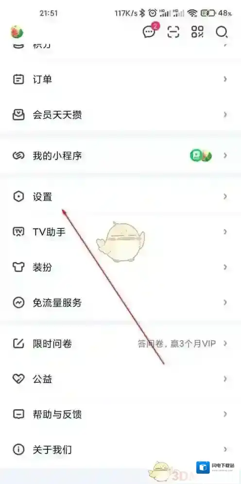 1、打开爱奇艺,在“我的”界面点击“设置”
