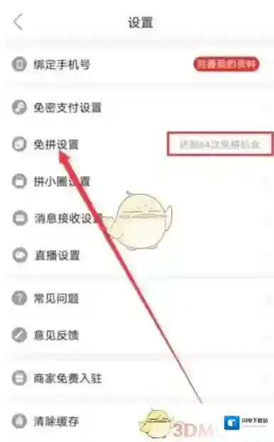 3、点击“免拼设置”,即可查看到免拼的次数。