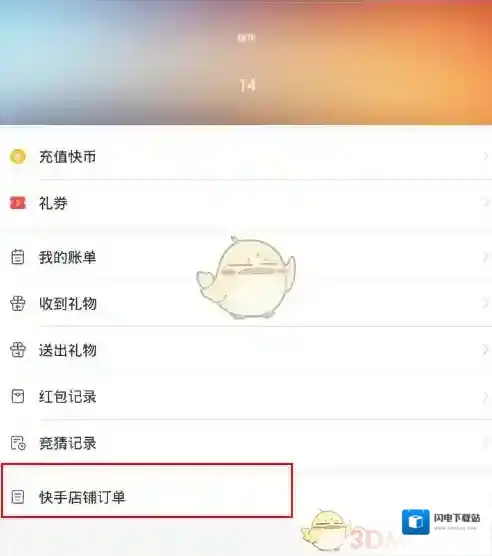 5、点击快手店铺订单按钮