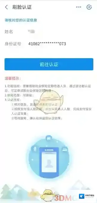 4、核对信息无误后,点击“前往认证”,进行“人脸识别认证”,根据系统提示,完成刷脸认证
