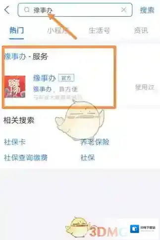 1、打开手机在支付宝,搜索“豫事办”,并点击“豫事办”服务小程序进入