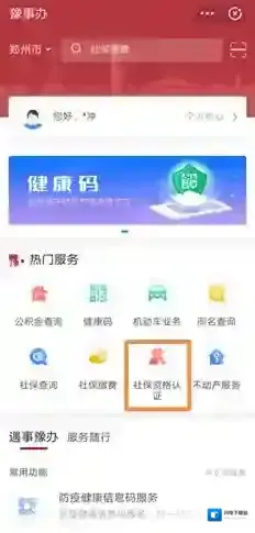 2、进入豫事办小程序后,在热门服务栏目下,点击“社保资格认证”进入