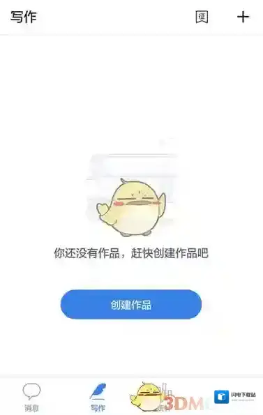 3、进入主界面,点击写作,提示新建作品,然后进入即可开始写作之旅。