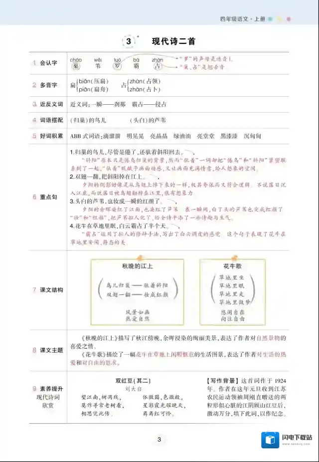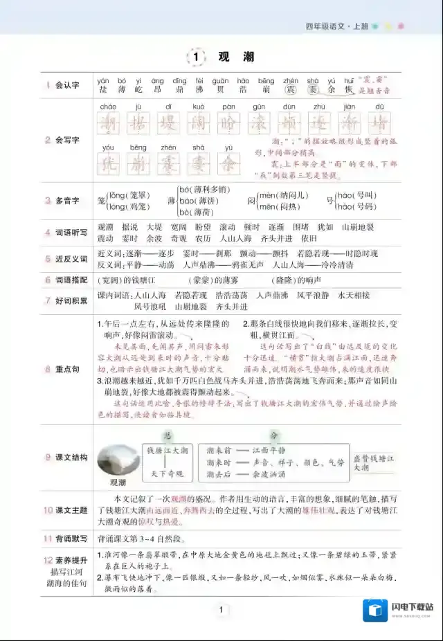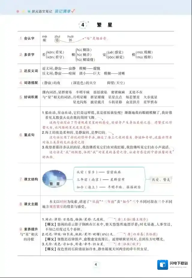 状元语文笔记(背记清单)小学4年级上册 pdf 百度云网盘