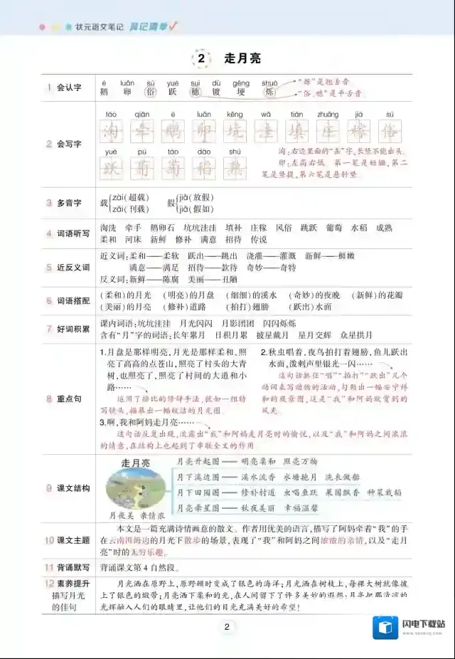状元语文笔记(背记清单)2年级上册PDF百度云网盘