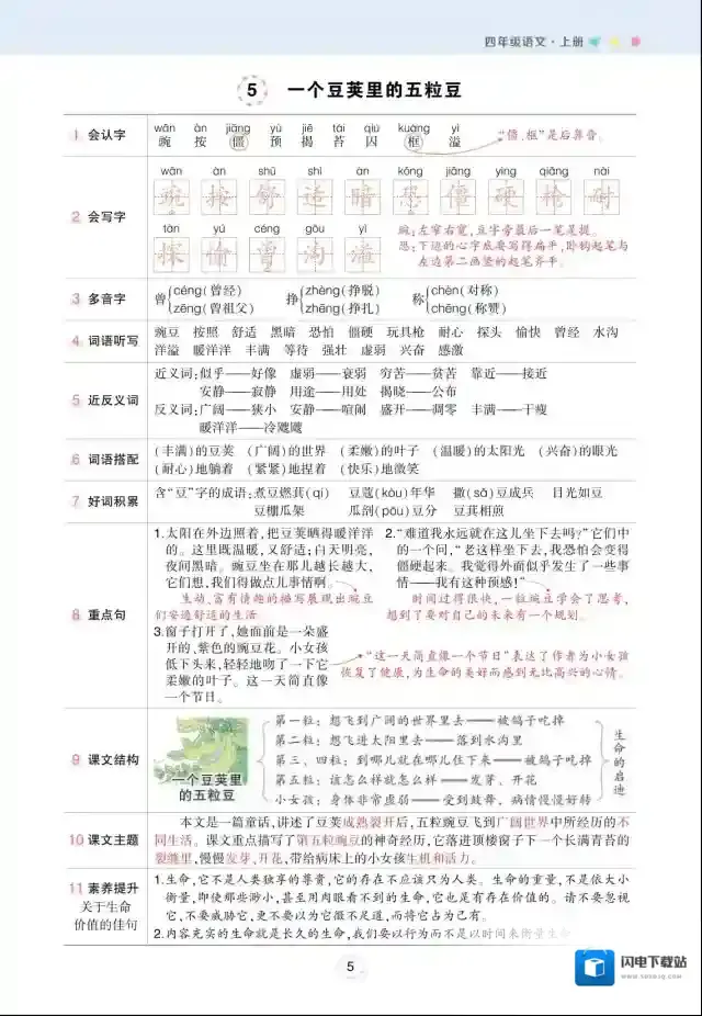 状元语文笔记(背记清单)小学5年级上册 pdf 百度云网盘