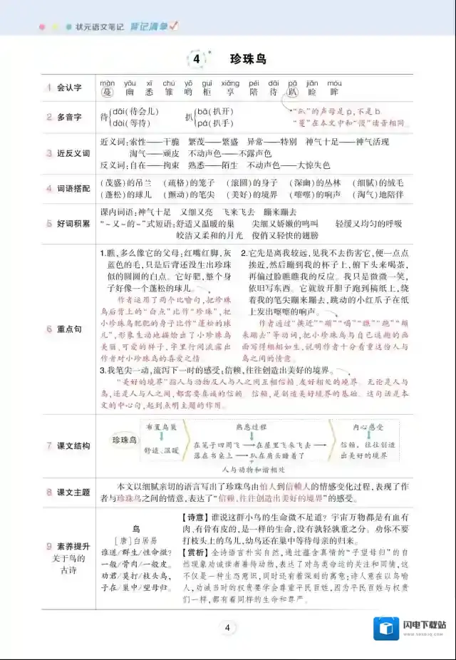 状元语文笔记(背记清单)小学4年级上册 pdf 百度云网盘