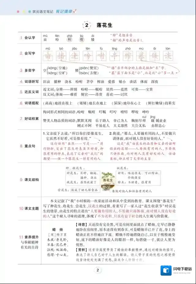 状元语文笔记(背记清单)2年级上册PDF百度云网盘
