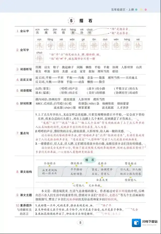 状元语文笔记(背记清单)小学5年级上册 pdf 百度云网盘