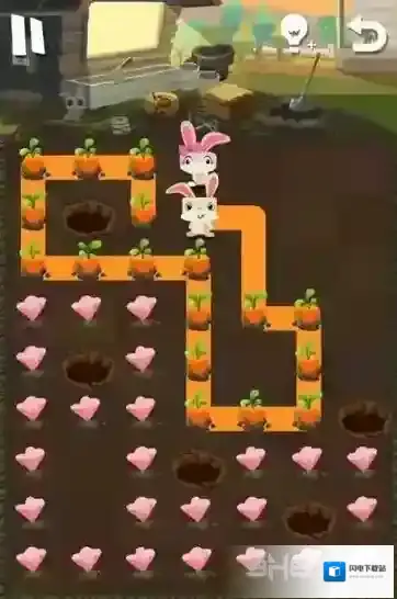 路线1:唯一可以动的小黄兔,先吃掉所有的萝卜进洞。