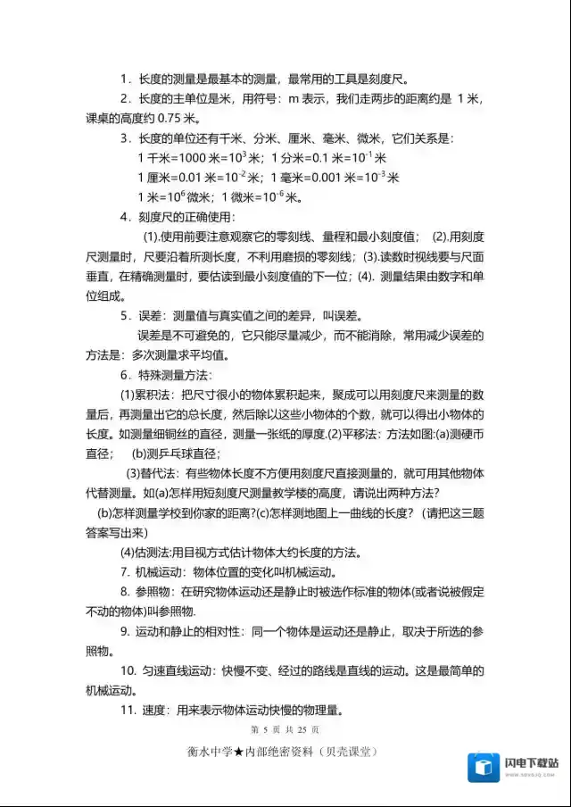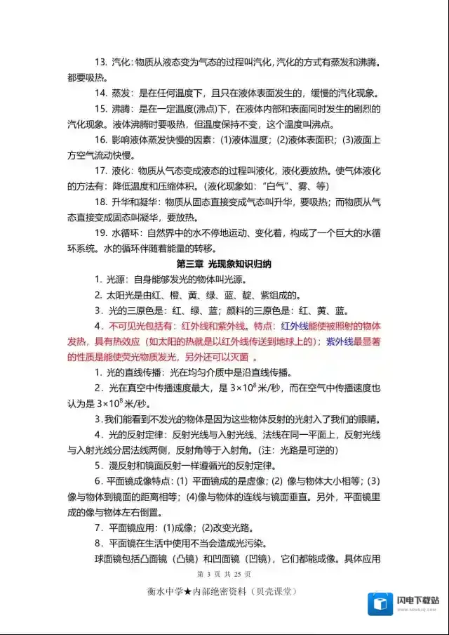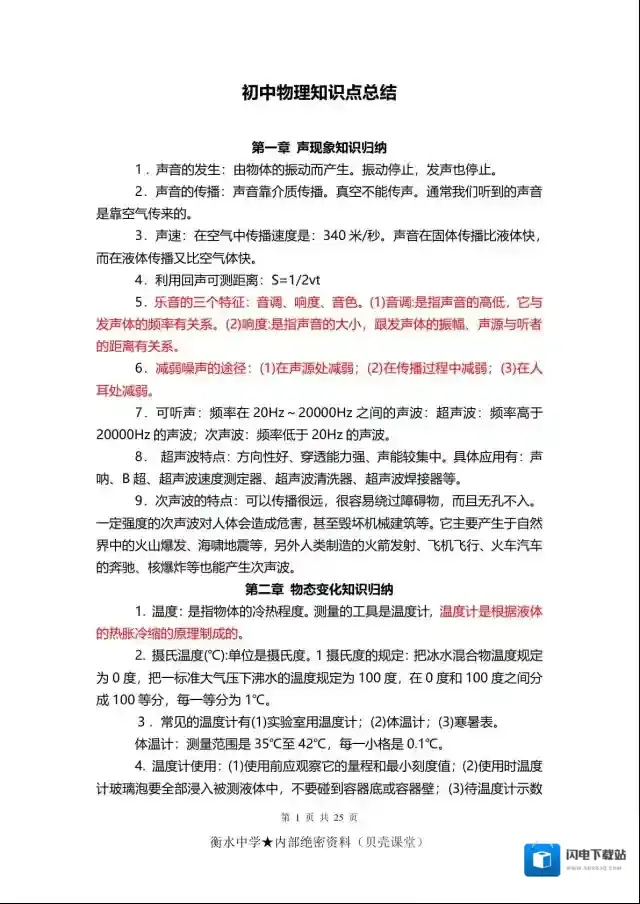 高清PDF电子版初中物理考点+公式总结(可下载打印)