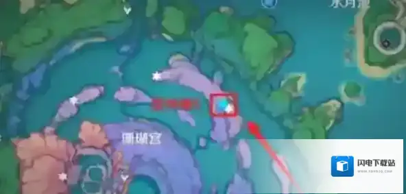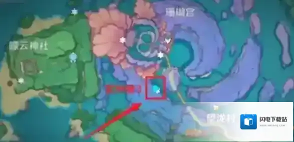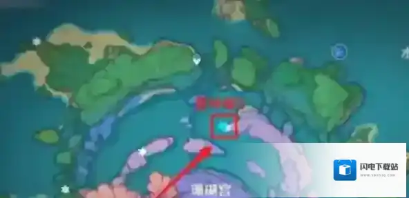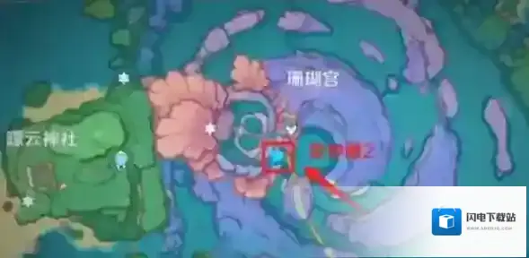 4、雷神瞳位置4:在珊瑚宫左上方找到两个山体平台,雷神瞳就在平台中间。