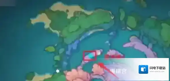 1、雷神瞳位置1:打开原神地图,进入珊瑚宫,在橙色山体和房子中间可以找到雷神瞳。