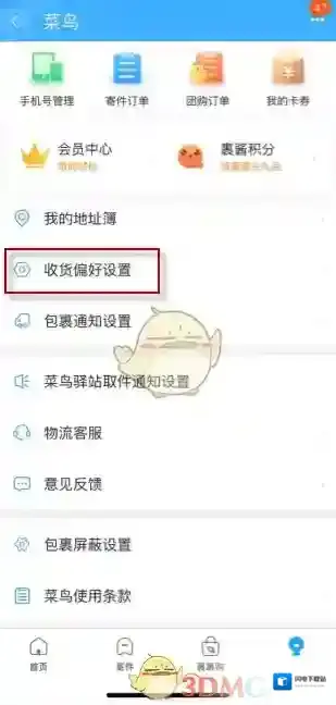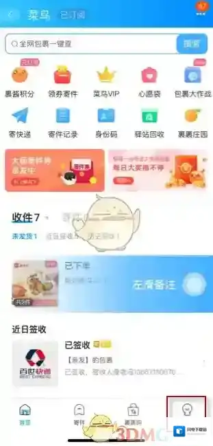 1、打开淘宝APP的我的淘宝界面,找到并点击“菜鸟”;