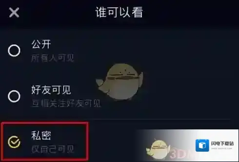 3、在发布页面,点击设置为“私密”,选择“发布”