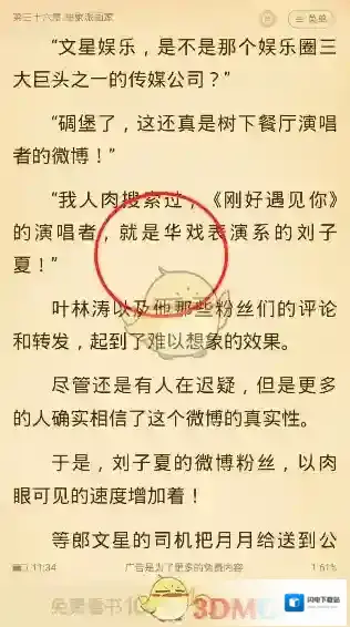 2、来到了小说的阅读界面后,然后我们点击手机的屏幕中心。