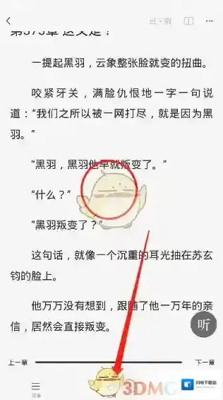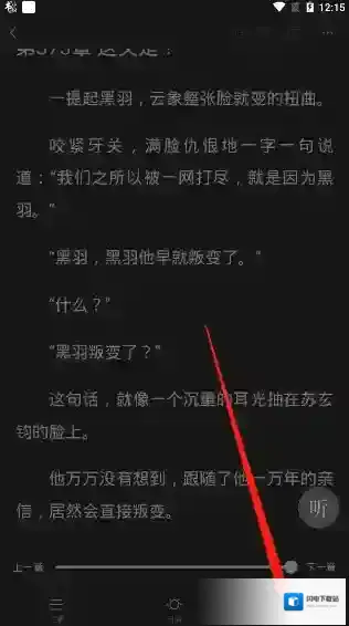 2、来到了小说的阅读界面,我们先点击手机的屏幕中心,然后在下方就能够看见“夜间”功能了。