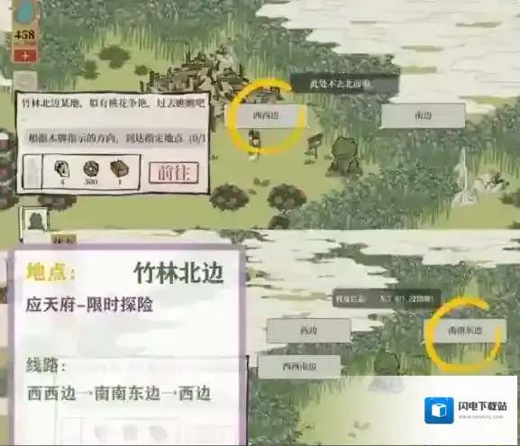 2、出现牡丹亭之后,需要选择,大家按照下图的顺序选择,西西边,南南边,西边,即可成功完成任务。