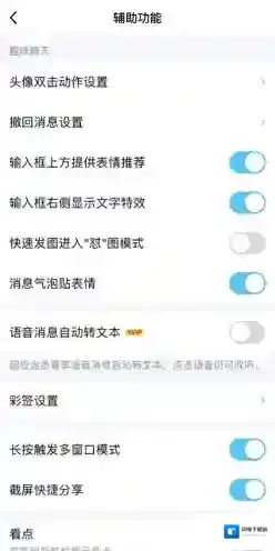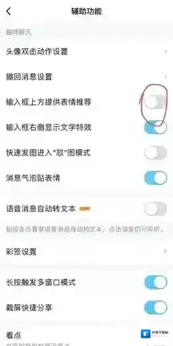 3、在辅助功能界面的趣味聊天分类下,能够看到“输入框上方提供表情推荐”这个功能