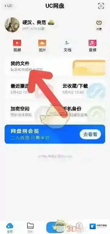 3、在uc网盘页面,点击并打开“我的文件”。