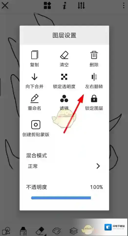 3、在这之后,选择图层设置页面里的“左右翻转”选项,就可以成功翻转当前图层画面了,非常的方便快捷!