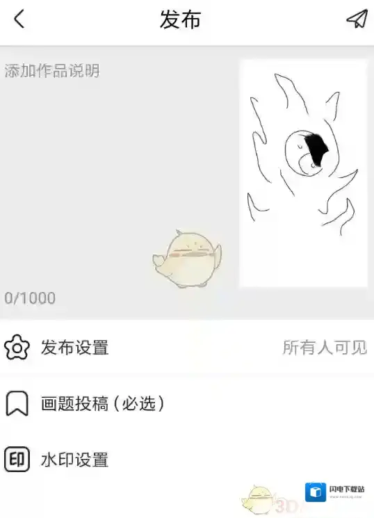 3、在这之后,大家还需要为作品添加相关说明、可见权限、投稿类型、水印,再点击右上角按钮就可以成功上传图片了。