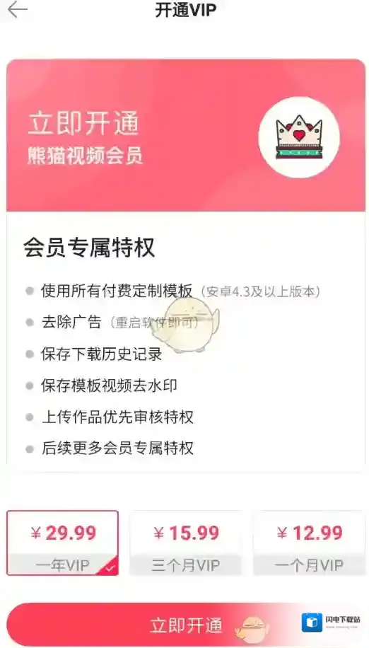 2、在花钱开通的VIP之后,用户才能够获得专属特权,享受去除广告、去除视频水印、使用所有付费定制模板等服务。