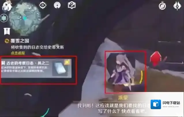 2、雪山七天神像下方的密室左边墙壁有个宝箱,开启后可以获得日志其一;
