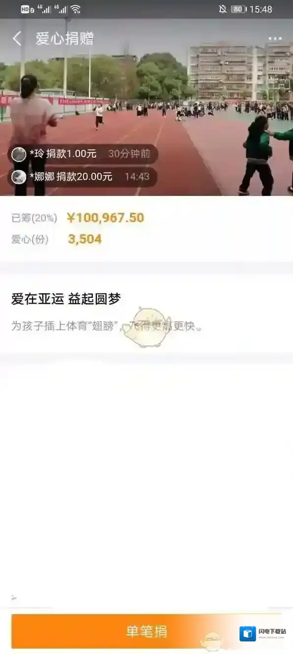 3、然后在项目界面,点击下方的单笔捐即可进行捐款;