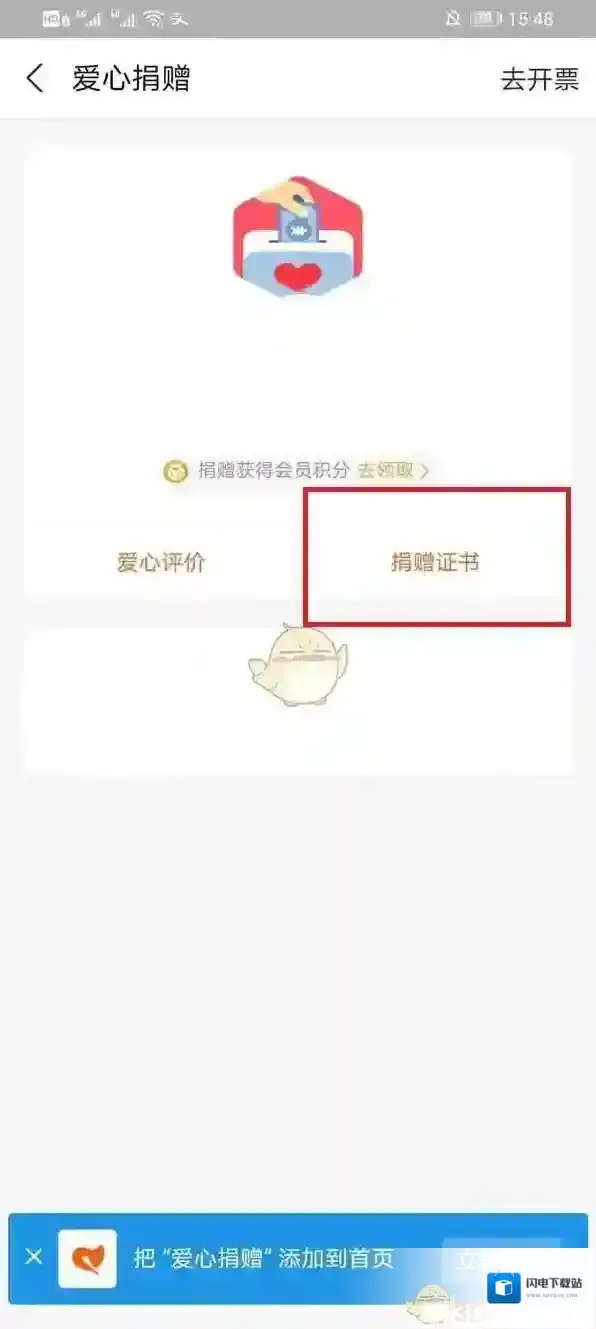 5、捐款成功后就可以获得证书,点击捐赠证书就可以进入查看证书。