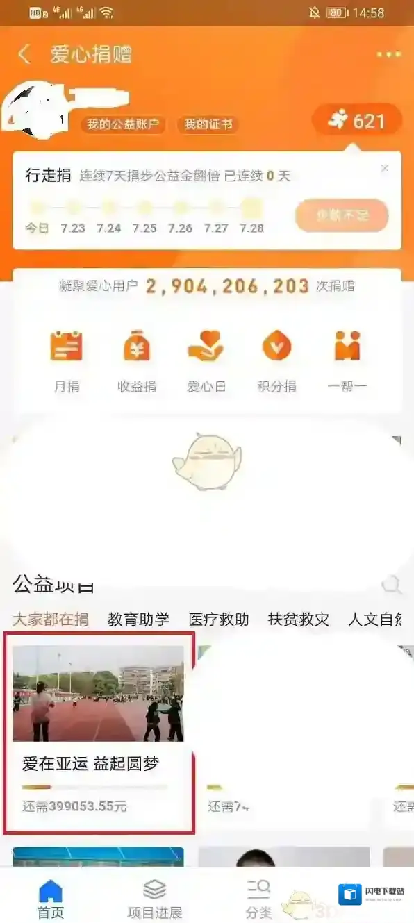 2、然后在爱心捐赠界面中选择自己想要捐赠的项目;