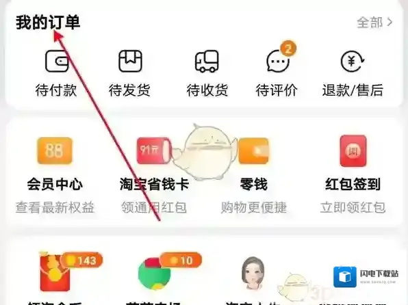 1、打开手机淘宝,点击“我的淘宝”,点击“我的订单”。