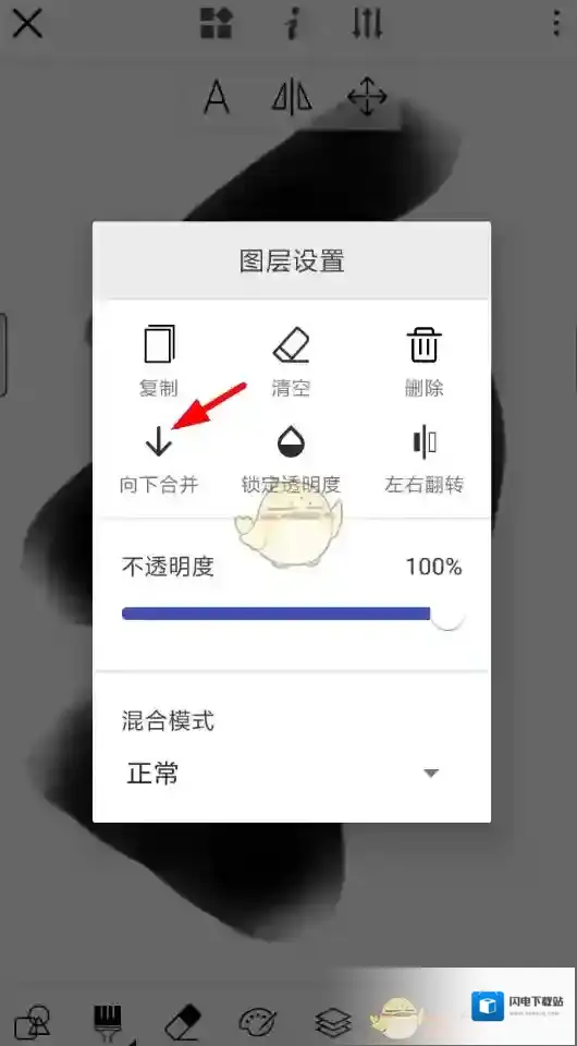3、这样一来,去直接点击想要合并的图片,在出现的菜单列表里选择“向下合并”的功能,就可以将该图层与下方的图层进行合并了。