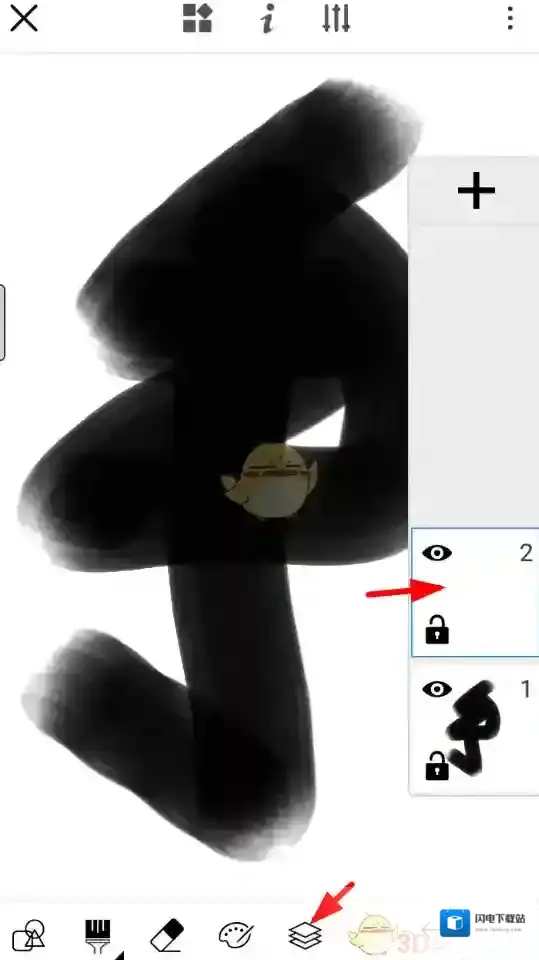 2、在设置绘画页面里点击下方图层按钮,去图层页面中点击“+”按钮新建图层,就可以进行合并了。