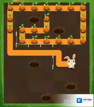 首先小黄兔子吃掉茄子给其他的兔子让出路来;下面小白兔吃掉萝卜进洞完美通关~