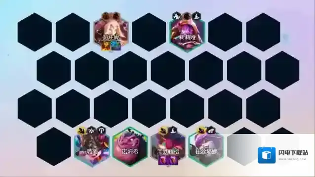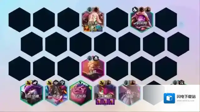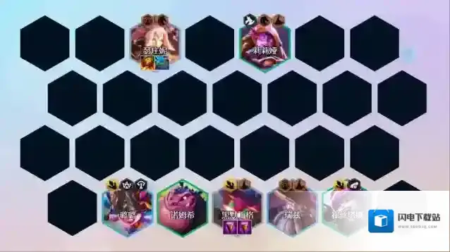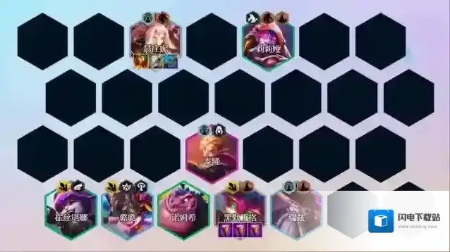 阵容运营:这是一套偏向D卡流的阵容,玩法思路是在5人口搜3星黑默丁格,6人口去追3星崔丝塔娜和璐璐的3星,后续只要疯狂拉人口开高冒险羁绊即可。