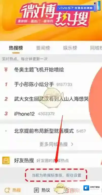 打开微博发现页,点击更多热搜进入微博热搜榜,然后滑到微博热搜最下端,点击当前为热搜标准版,前往设置字样,最后在这里,用户们可以修改定制设置,点击最下方恢复为默认设置即可查看正常的热搜榜单。