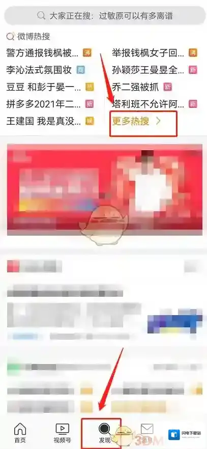 1、打开微博发现页,点击更多热搜进入微博热搜榜。