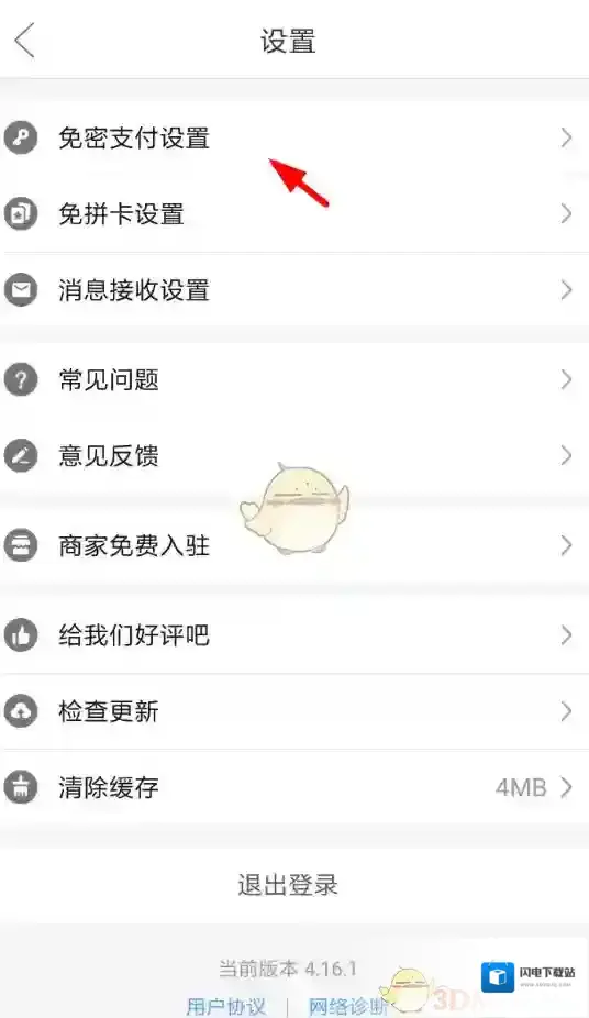 2、接下来从设置页面的上方直接选择“免密支付设置”的选项,就可以去设置微信或支付宝的免密支付功能了。