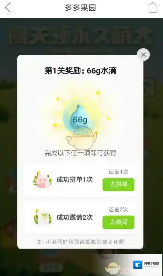 进入拼多多的多多果园后,从多多果园的页面左侧可以看到一个小屋,点击该小屋即可进入闯关页面里领养萌犬了。而大家需要满足7项任务要求,通过诸如“拼单”,“邀请好友”等行为来完成关卡,当闯过了第八关的时候就可以成功领养萌犬了。