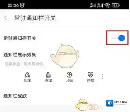 5、常驻通知栏开关后侧,点击灰色按钮。灰色为关闭,蓝色为开启状态