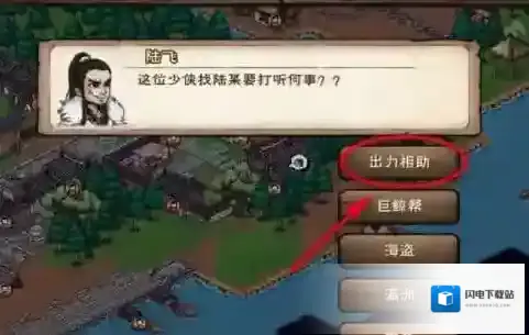 5、然后继续跟陆飞进行对话,接着选择出力相助选项。