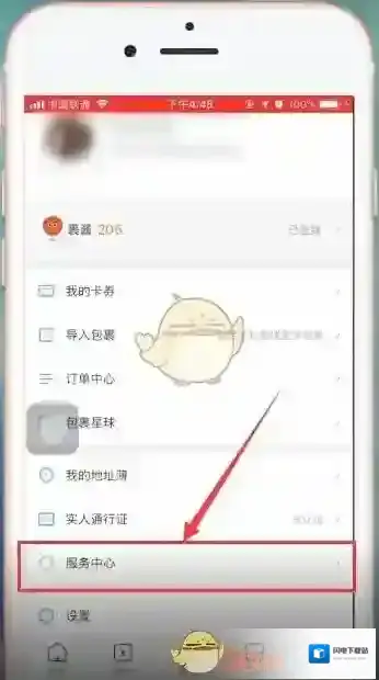 2、接着在个人中找到并选择服务中心