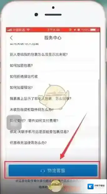 3、然后在服务中心一直下拉可以看到物流客服功能,点击它就能寻找人工客服进行投诉了。